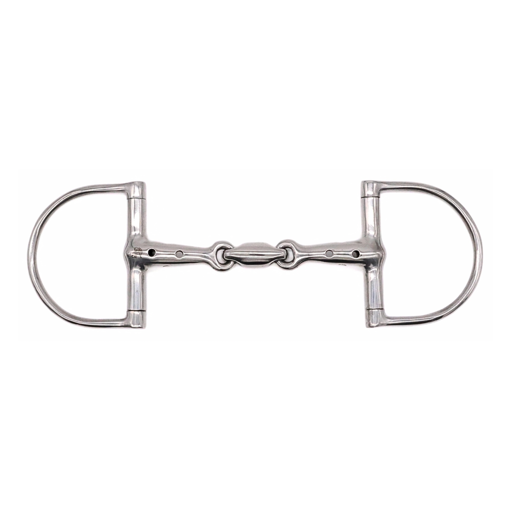The D-Ring Snaffle Bit is named for its distinctive D-shaped sidepieces, which prevent the bit from being pulled through the horse’s mouth. The fixed D-rings provide lateral stability, offering precise control and clear communication between rider and horse. Due to its design, the D-bit applies additional pressure on the horse’s cheeks, enhancing maneuverability, making it a popular choice for training young horses.