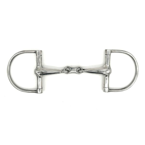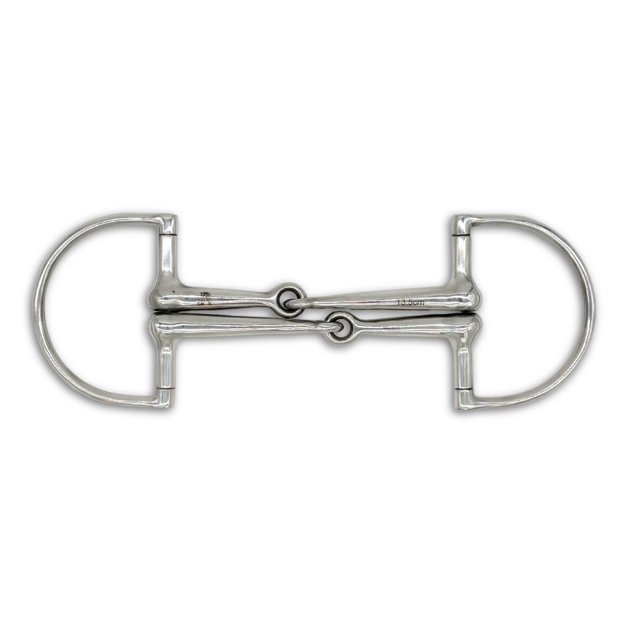 The D-Ring Snaffle Bit is named for its distinctive D-shaped sidepieces, which prevent the bit from being pulled through the horse’s mouth. The fixed D-rings provide lateral stability, offering precise control and clear communication between rider and horse. Due to its design, the D-bit applies additional pressure on the horse’s cheeks, enhancing maneuverability, making it a popular choice for training young horses.